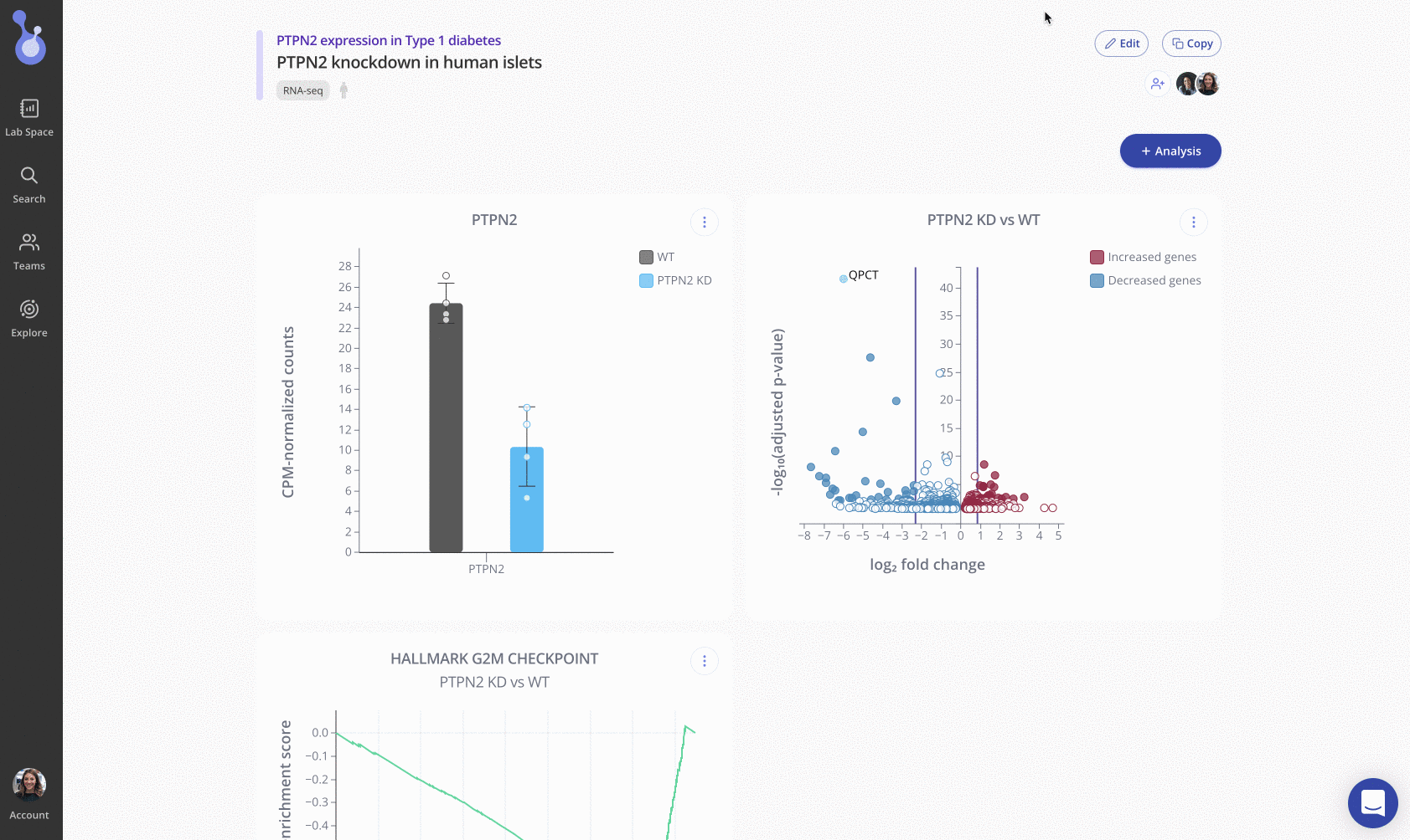 gene names are automatically linked and annotated when you upload your data to Pluto, so you can focus on investigating the biology instead of sifting through databases.