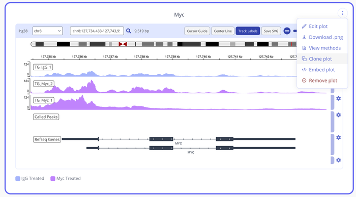Integration of public data sets: IGV plots allow users to integrate public data sets, such as gene annotations, genomic sequence data, and epigenetic modifications. This integration enables users to examine the context of genomic features and better understand their functional roles.