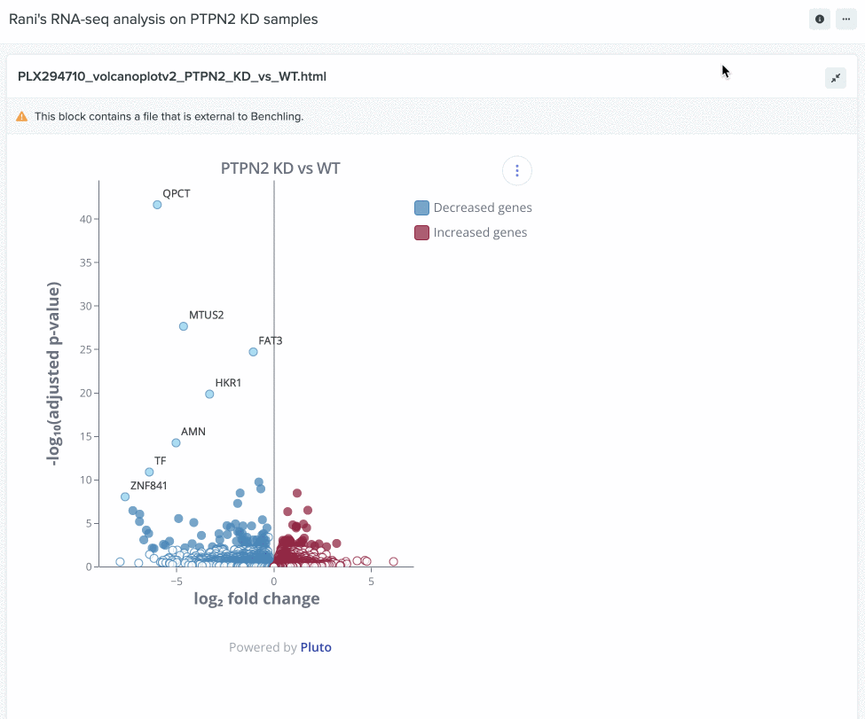 - Save hours of time spent exporting and updating graphs by exporting interactive Pluto plots directly into Benchling