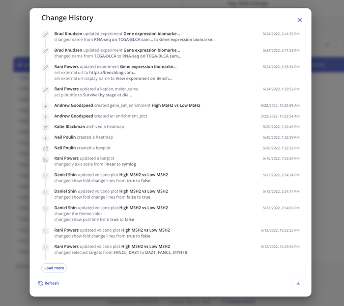 While some features naturally capture the spotlight, some make their important impact behind the scenes. With the Change History link in the footer of every experiment in Pluto, you can review the full list of modifications made to any experiment, from creation to final results, for end-to-end traceability into how results were generated.