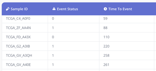 Include 2 new columns in your sample data representing 1) the binary status of an event and 2) the time to the event, and create interactive Kaplan-Meier curves with a few clicks.
