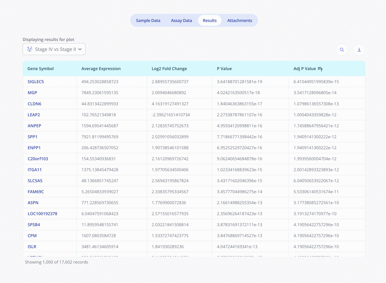 When you run an analysis in Pluto, the full results are available to download from the Results tab, and can be fetched programmatically via the Pluto API.