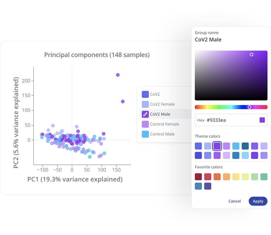 One of our users' top requested features this summer was customizing plot colors and palettes. We're delighted to announce that you can design beautiful figures by hand-picking each color for your figures. Plus, save your favorite colors for later, or even define company-approved palettes.