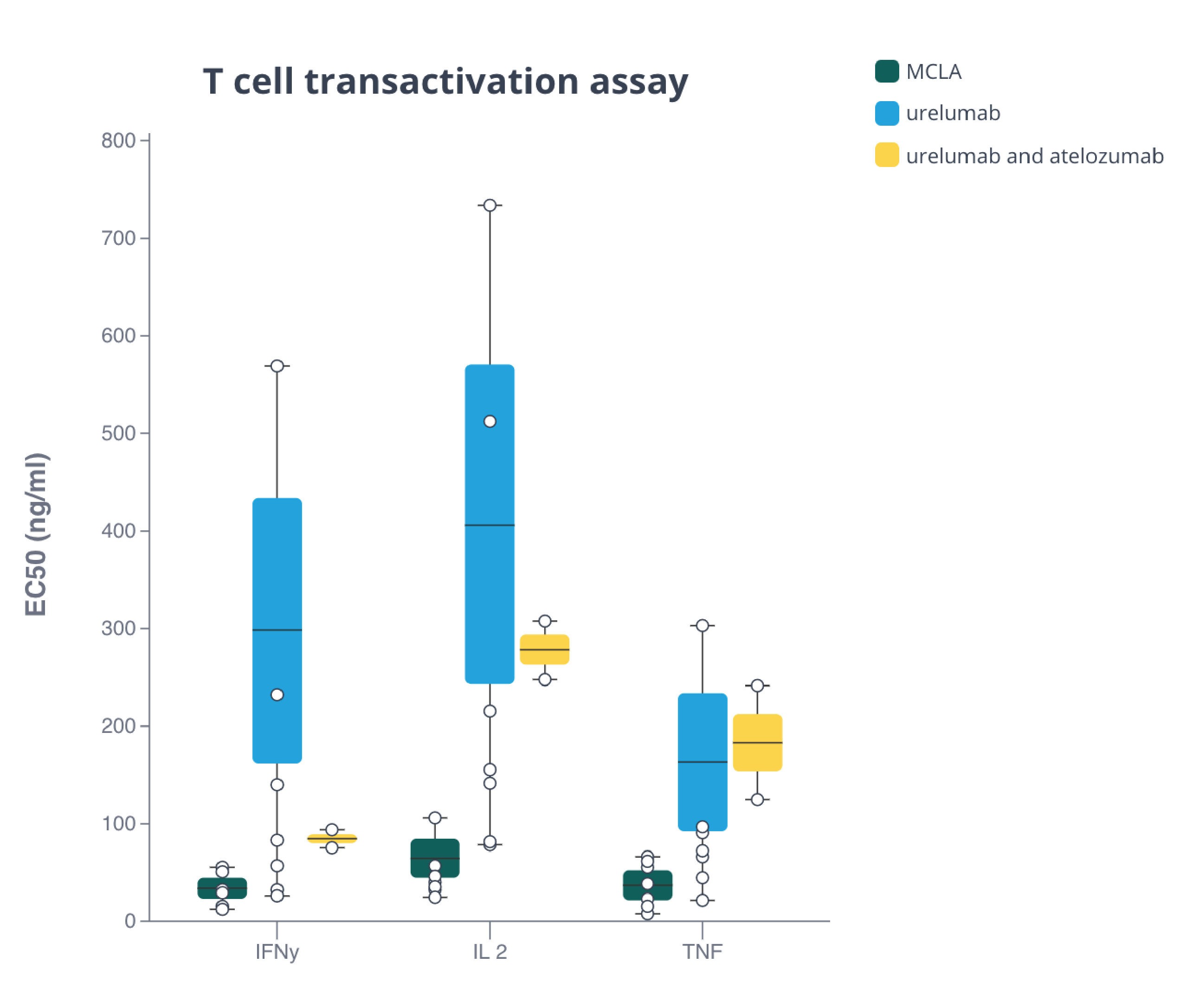 Box plot shows cytokine expression induced by MCLA-145. Plot made with Pluto.
